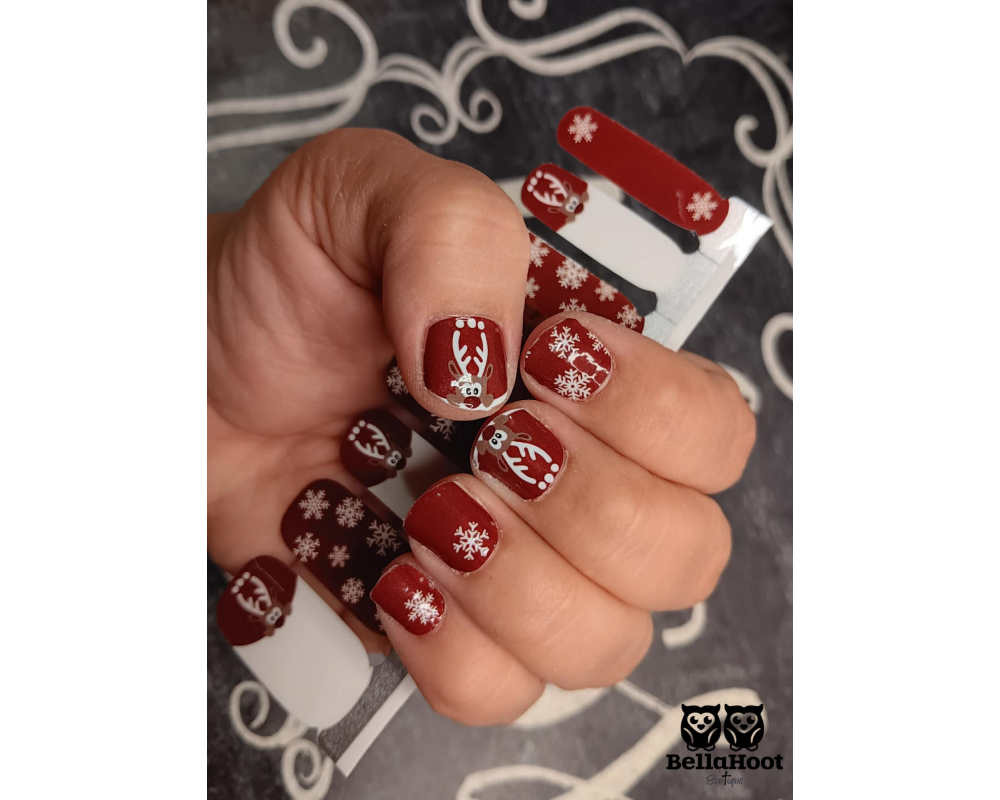 4.Place the rounded side of the sticky side down. Firmly smooth the nail surface until wrinkle free.