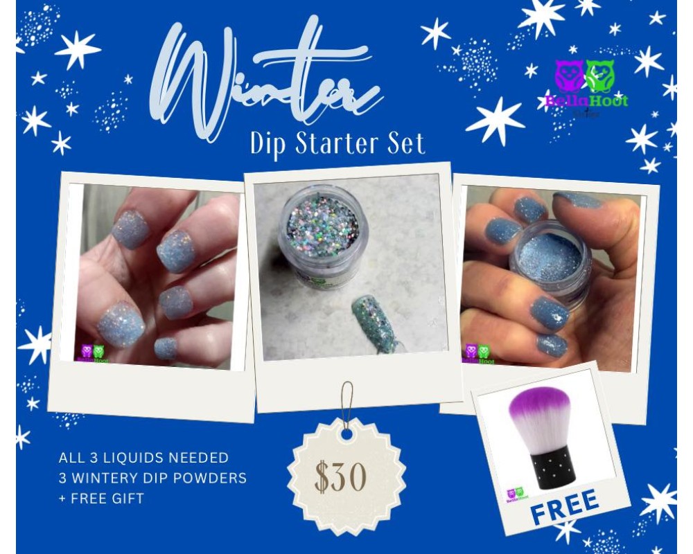 Includes: 1 base coat, 1 Activator, 1 Top Coat, 3 powders, 1 bag and 1 anklet.