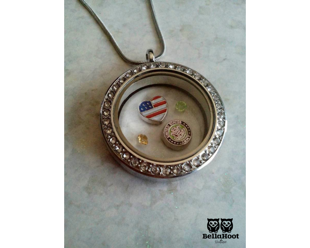 Chain is approx 20". Locket is 30mm twist top. All metals are alloy. Charms as shown.