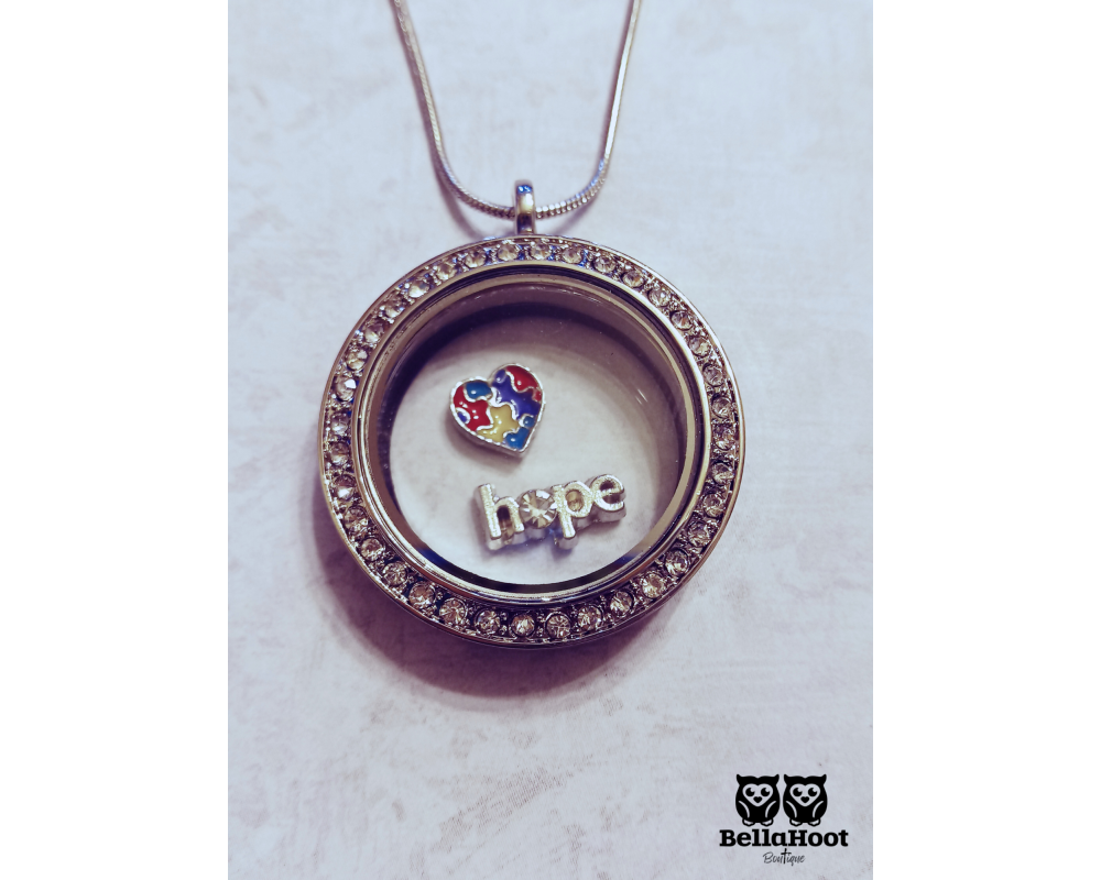 Chain is approx 20". Locket is 30mm twist top. All metals are alloy. Charms as shown.