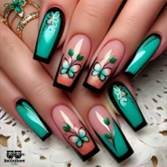 The transparent tips with bright green accents give a modern, eye-catching finish while still keeping the overall look light and wearable.